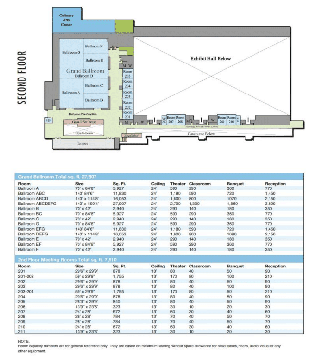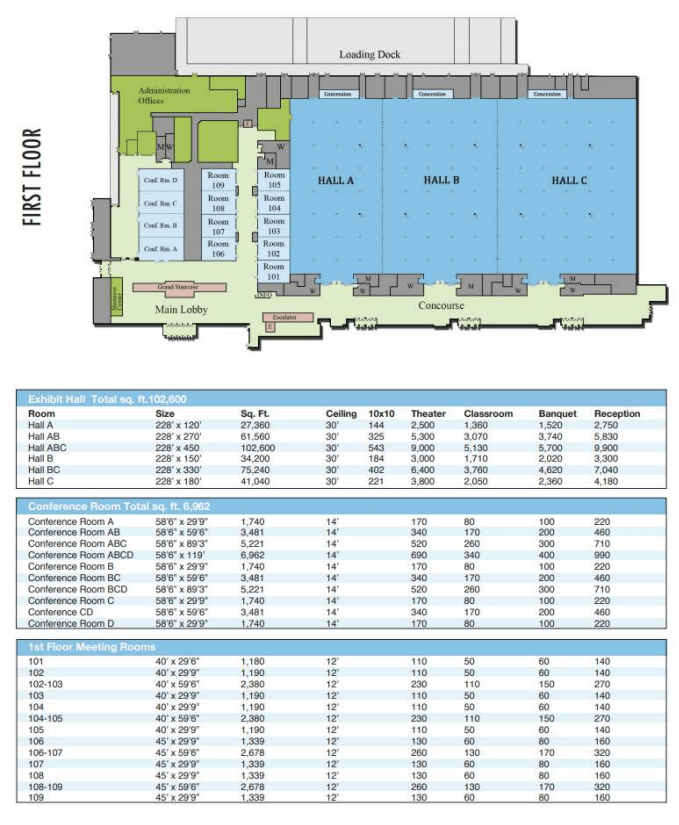 The Hampton Roads Convention Center in Hampton, VA offers a wide range of configurable event spaces across its 344,000 sq ft facility, including three exhibit halls, a grand ballroom, and dozens of breakout and meeting rooms that can be arranged to suit everything from large conventions to smaller meetings and banquets. It provides 35 flexible spaces with capacities for up to roughly 14,000 attendees and downloadable floor plans on its website to help you visualize different layouts. Availability for specific dates or room configurations varies with demand, planners are encouraged to contact our venue’s sales team early to secure the spaces and setups they need.